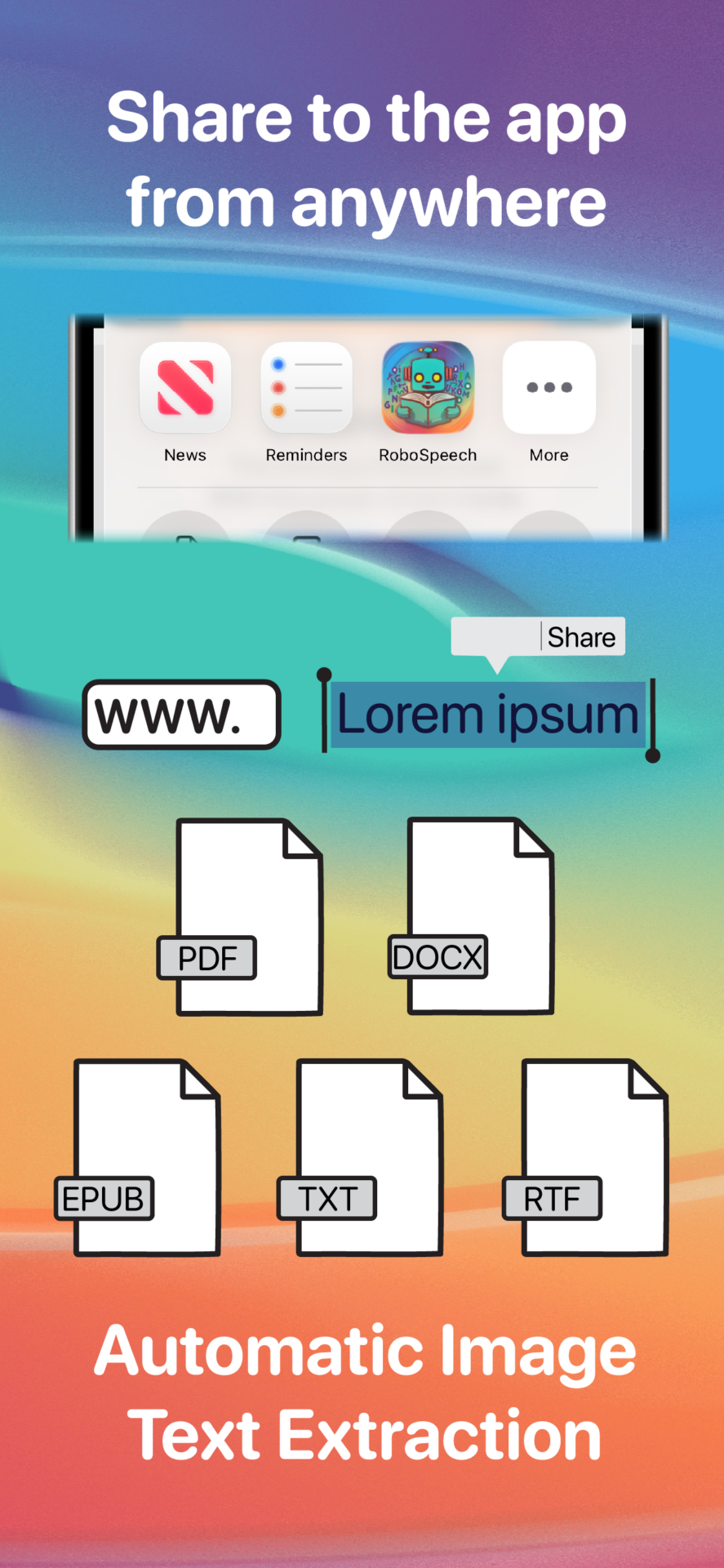 Tired of reading? Let RoboSpeech bring your text to life with natural-sounding voices and podcast-like controls. Whether it’s an article, a book, a document, or even an image, RoboSpeech turns your reading into a hands-free listening experience.