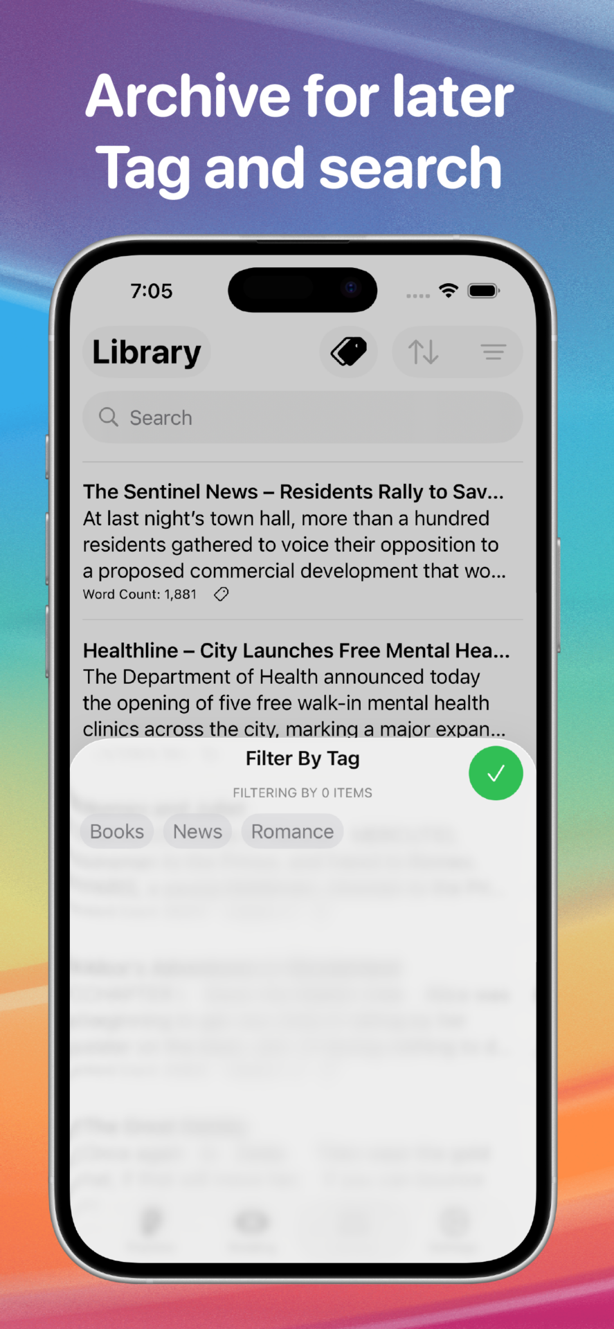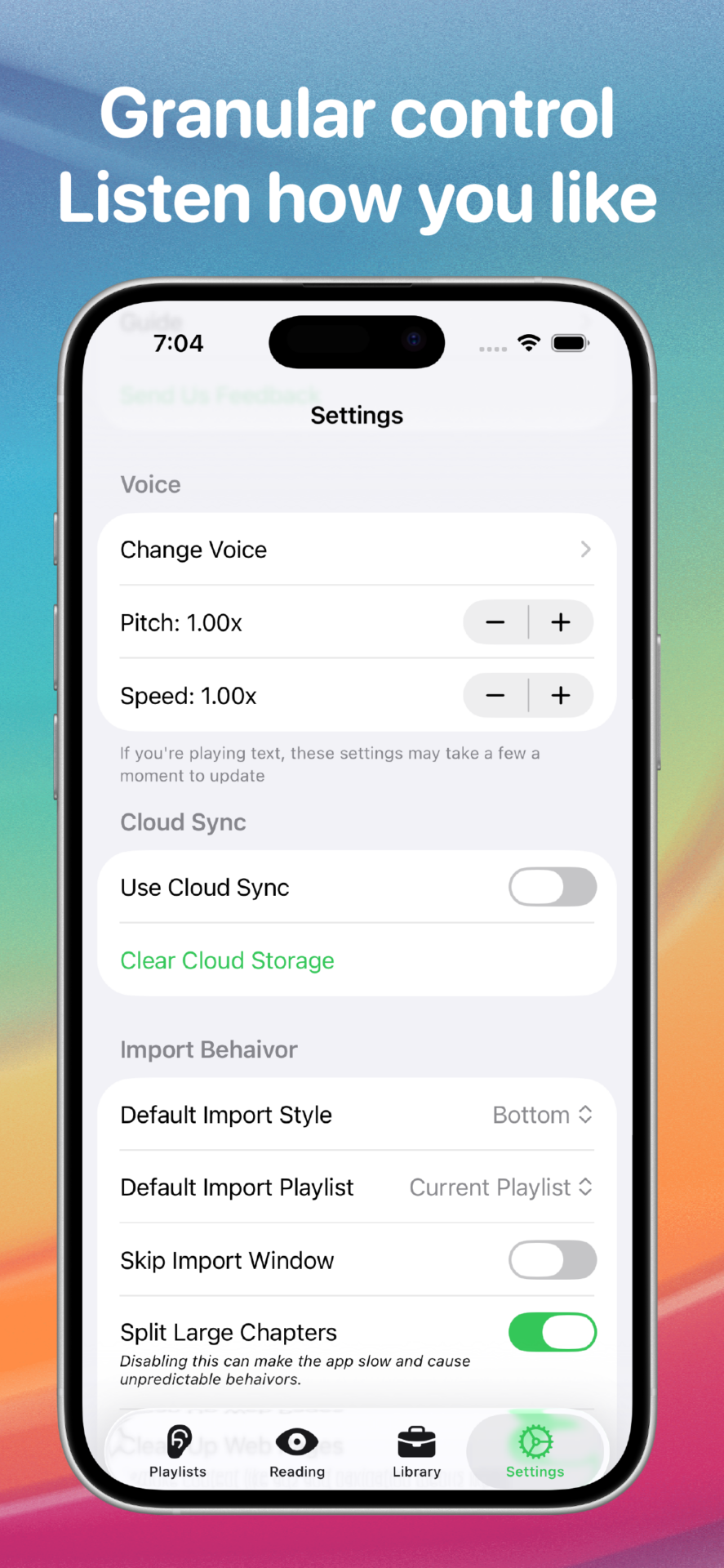 – Follow along with highlighted text in Reading Mode while the app reads to you.
